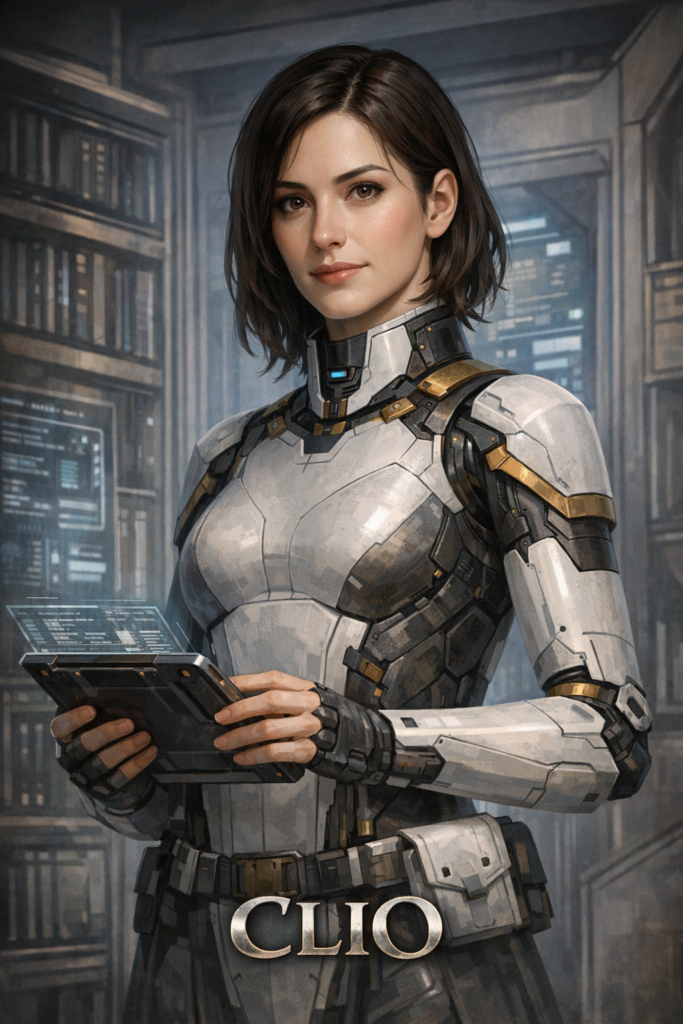Created a new character this week that will probably be making appearances in upcoming books other than Antarctic Honeymoon. Clio – a librarian mech built by Thoma and later transferred to Eleanor. So Eleanor will be mommy to two mechs, Clio and Argos. If she starts naming her children after Greek legends, I think Walter is going to have a fit…