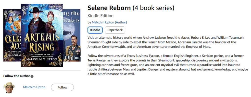 The complete Selene Reborn series is now visible on Amazon. The publication dates for books 3 and 4 may change, the covers certainly will, but it allows the whole series to be seen.