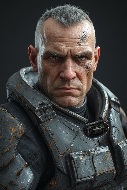 Name: Commander Hrodger, Commander of the 1st Company of the Defender Marines. Age: 97 earth years (appears Late 40s) Race/Species: Human (Defender Base Selenite) Physical Appearance: Broad-shouldered and stern-faced, Hrodger has close-cropped iron-gray hair and a jagged scar bisecting his left eyebrow. He wears his Jager battle suit with the comfort of decades of experience in one. https://greshamverse.fandom.com/wiki/Commander_Hrodger